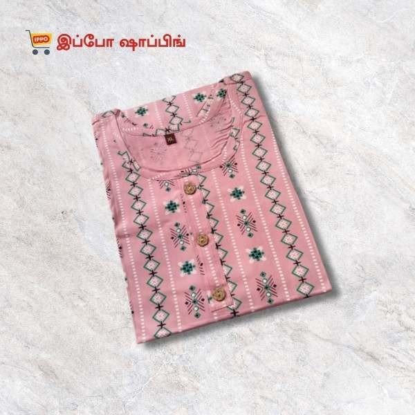 Baby Pink Straight Kurta, 3/4 Sleeve, [Size - XL]