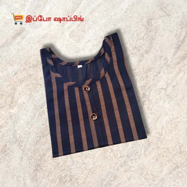 Blue Striped Straight Kurta, 3/4 Sleeve, [Size - XXL]