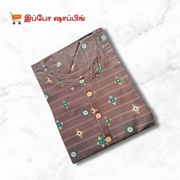 Brown Horizontal Striped Semi Umbrella Kurta, 3/4 Sleeve, [Size - XL]