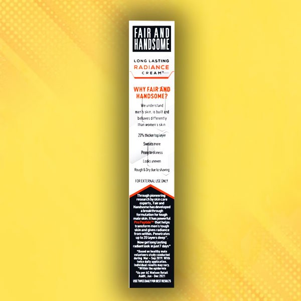 Emami Fair & Handsome Long Lasting Radiance Cream, 2X Spot Reduction, 7 Hrs Brighter Looky, Pro-Peptide, Face Cream For Men, 10g