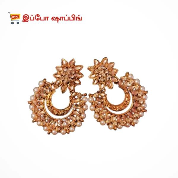 Kundan and Pearl Chandbali Earrings