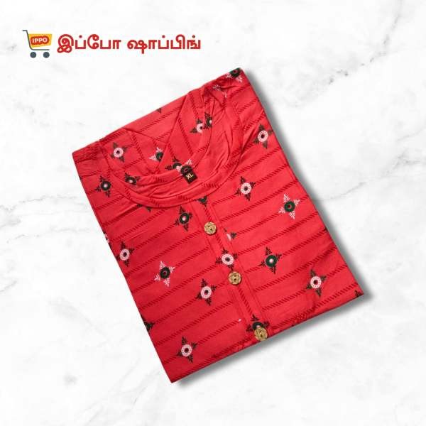 Red Horizontal Striped Semi Umbrella Kurta, 3/4 Sleeve, [Size - XL]