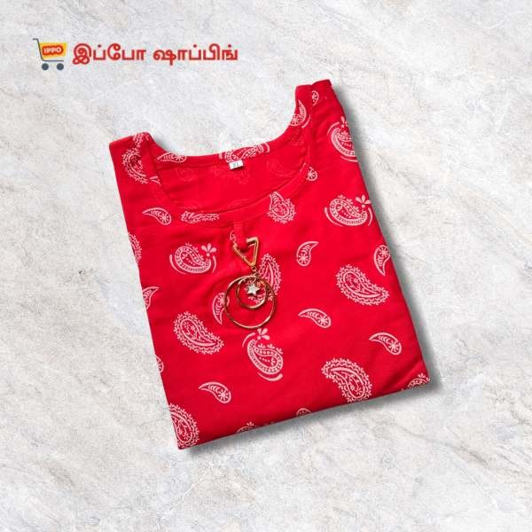 Red Semi Umbrella Cut Kurta, 3/4 Sleeve, [Size - XL]