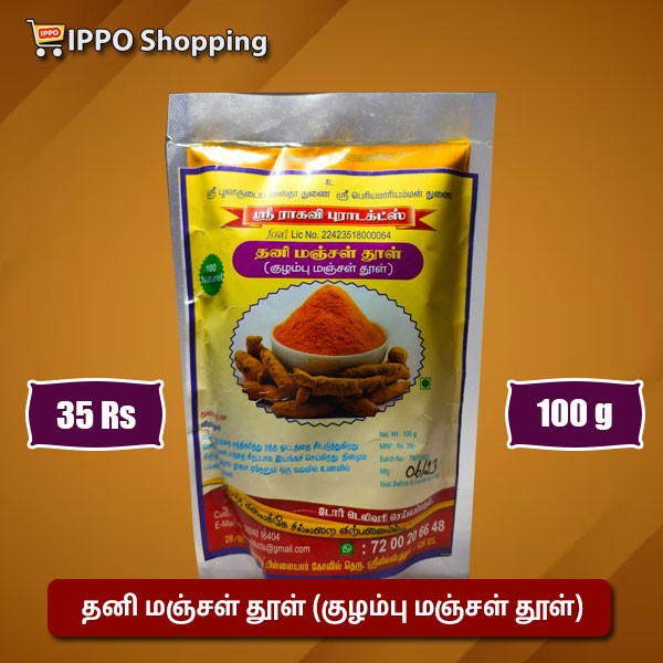 தனி மஞ்சள் தூள் (குழம்பு மஞ்சள் தூள்) - 100 கிராம் - 35 ரூபாய் || thani manjal thool (kulampu manjal thool) - 100 g - 35 Rs