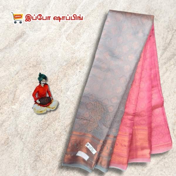 Grey and Pink Visiri Folding Copper Silk Saree