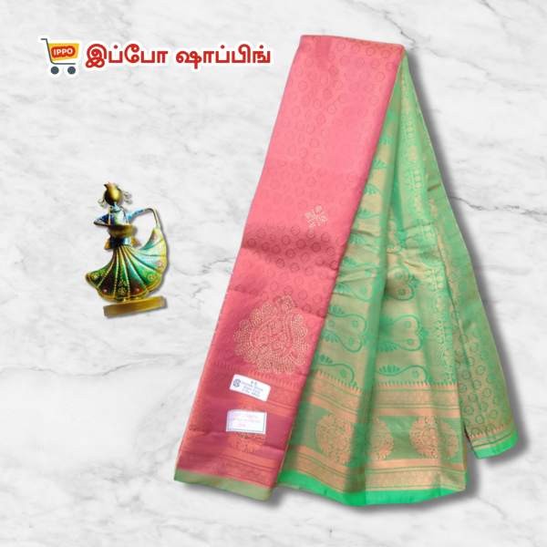 Red and Green Visiri Folding Copper Silk Saree